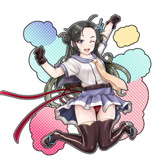 夕雲型驅逐艦——五號艦捲波,來報道囉。這艦隊怎麼搞的?提督,連你都沒精神耶。我來了喔!喏,開心一點嘛! | ||