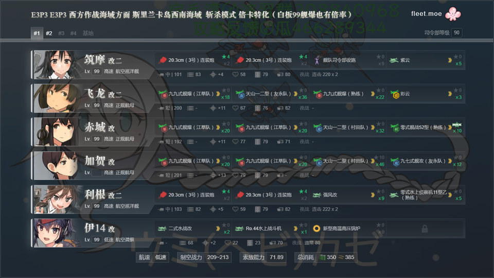 E3先行,P3联合舰队打护卫归还姬(新版护卫栖姬),由于南云史实空母带上99系、97系有高倍卡加成所以选机动来攻略。(97和99系列的装备倍率分独立计算?)